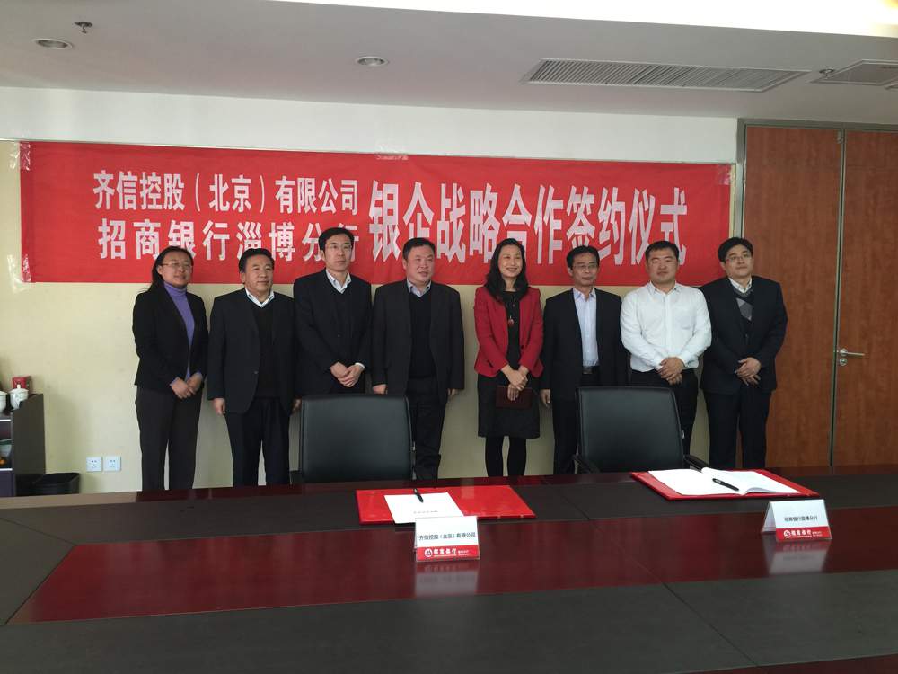 2014年12月5日,我公司和招商銀行淄博分行簽訂銀企戰略合作協議。雙方本著資源共享、優勢互補與業務創新、互惠互利、共同發展的原則,以達到助推雙方業務跨越式發展的目標,在節能服務領域和機電設備進出口服務領域將展開深入的合作。 該協議的簽訂標志著雙方合作正式開始,必將給銀企雙方帶來直接的經濟效益,同時,也將給淄博市乃至全國的投資建設項目運作帶來更為長遠的有益影響。