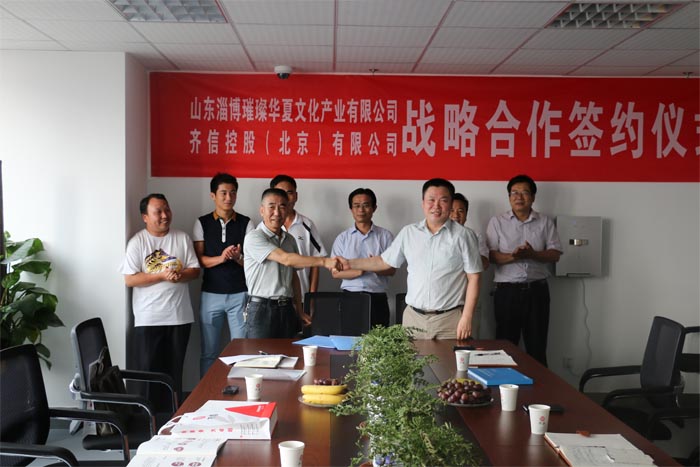 2014年6月27日,山東淄博璀璨華夏文化產業有限公司控股方代表成晟等一行三人來到我公司參觀交流,之后雙方簽署了《戰略合作協議》,正式建立全面戰略合作伙伴關系。